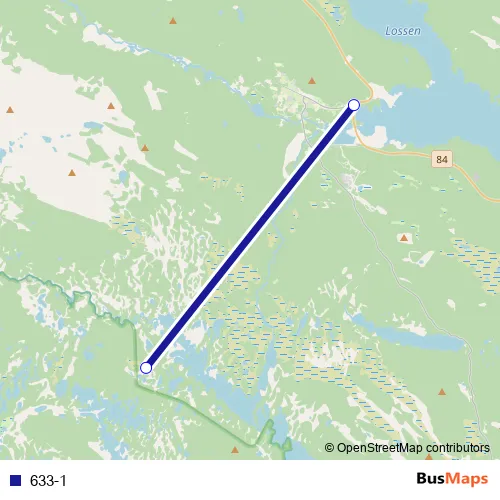 The first stop of the 633-1 bus route is Tännäs vägskäl väg 84 and the last stop is Kärringsjövallen. 633-1 is operational during on weekdays.