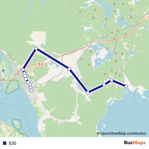 The first stop of the 635 bus route is Åvikebruk and the last stop is Söråker köpcenter. 635 is operational during everyday.