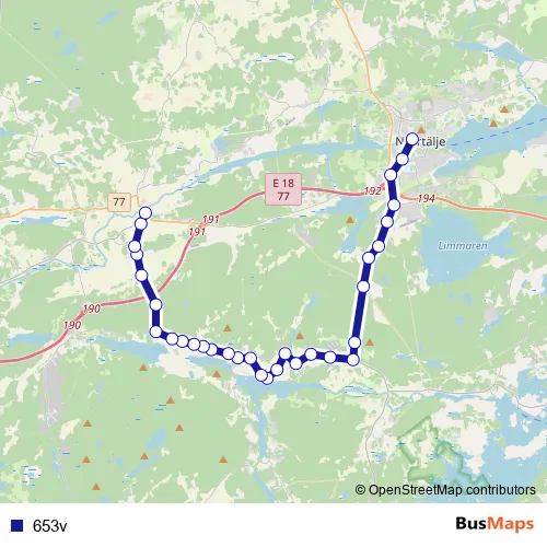 The first stop of the 653v bus route is Norrtälje busstation and the last stop is Sätuna. 653v is operational during on weekdays.