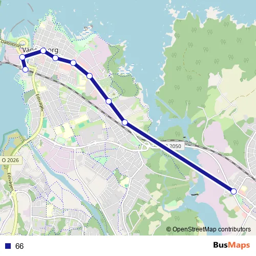 The first stop of the 66 bus route is Vänersborg Centralstation and the last stop is Vargön Fyrkanten. 66 is operational during everyday.