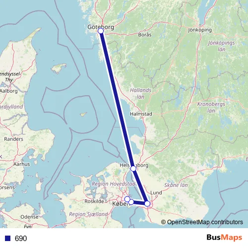 The first stop of the 690 bus route is Göteborg Nils Ericsonterminal and the last stop is