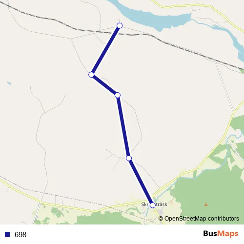 The first stop of the 698 bus route is Skråmträsk vägskäl and the last stop is Gråberg. 698 is operational during everyday.