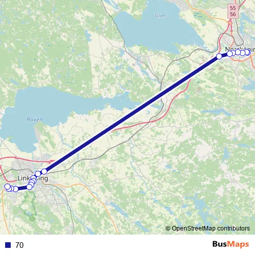 The first stop of the 70 bus route is Östra station and the last stop is Linköping Mjärdevi. 70 is operational during on weekdays.