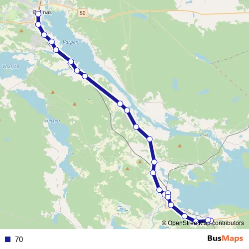 The first stop of the 70 bus route is Bollnäs station and the last stop is Lilltjära Vassbacken. 70 is operational during everyday.