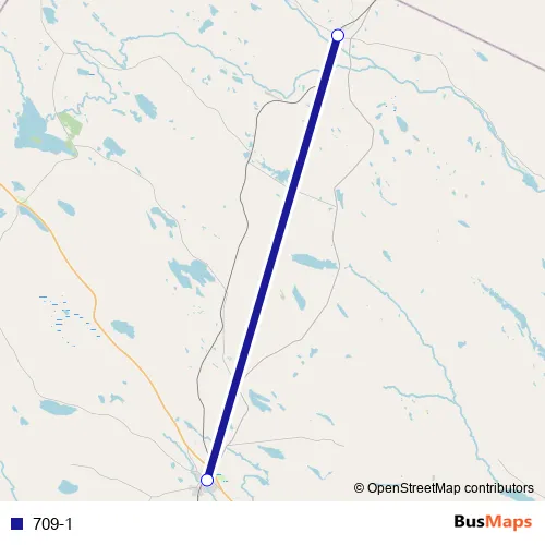 The first stop of the 709-1 bus route is Myrheden and the last stop is Jörn busstation. 709-1 is operational during everyday.