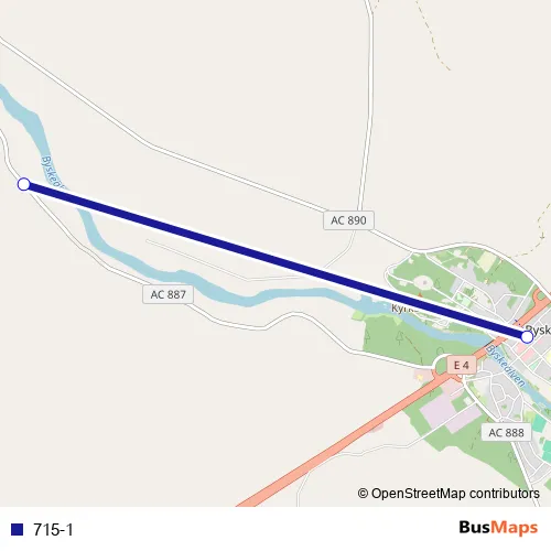 The first stop of the 715-1 bus route is Byske busstation and the last stop is Lundbäck. 715-1 is operational during everyday.