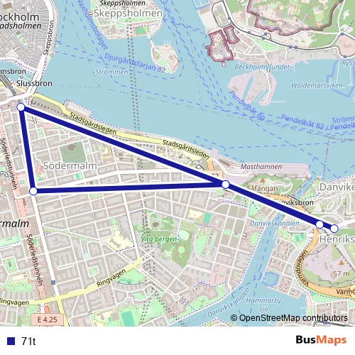 See why over 2 million users trust and consider busmaps.com as the best public transport website. busmaps gives you Stockholm Buses suggested routes, real-time bus tracker, line route maps in Stockholm, and helps to find the closest 71t bus stops near you. No internet available? Download an offline PDF map and bus schedule for the 71t bus to take on your trip.