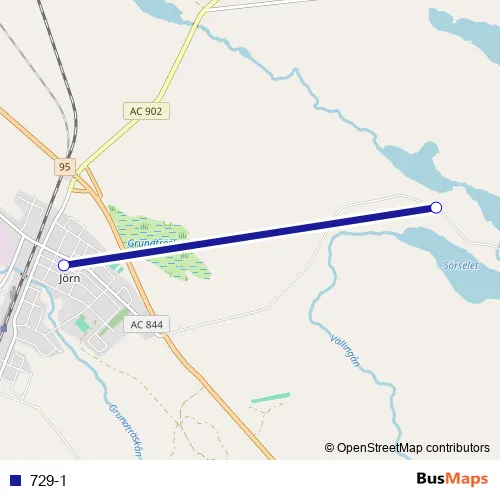 The first stop of the 729-1 bus route is Strycksele and the last stop is Jörn busstation. 729-1 is operational during everyday.