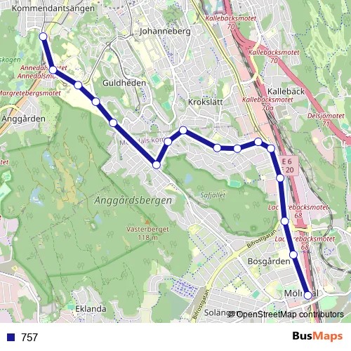 The first stop of the 757 bus route is Göteborg Linnéplatsen and the last stop is Mölndals Innerstad. 757 is operational during everyday.