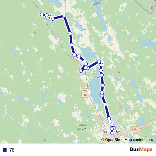The first stop of the 78 bus route is Vimmerby station and the last stop is Gullringen station. 78 is operational during on weekdays.