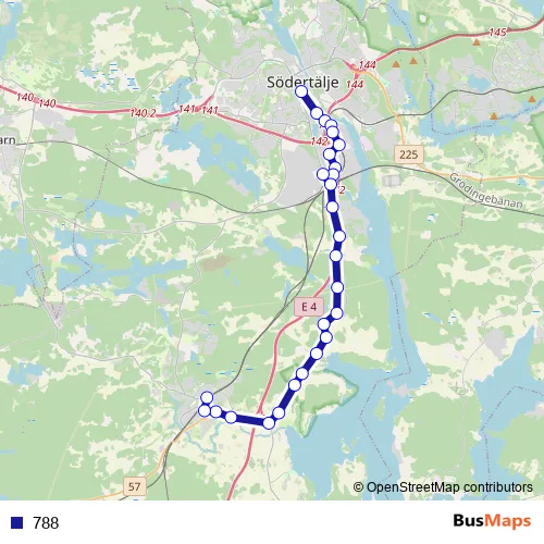 The first stop of the 788 bus route is Södertälje centrum station and the last stop is Järna station. 788 is operational during everyday.