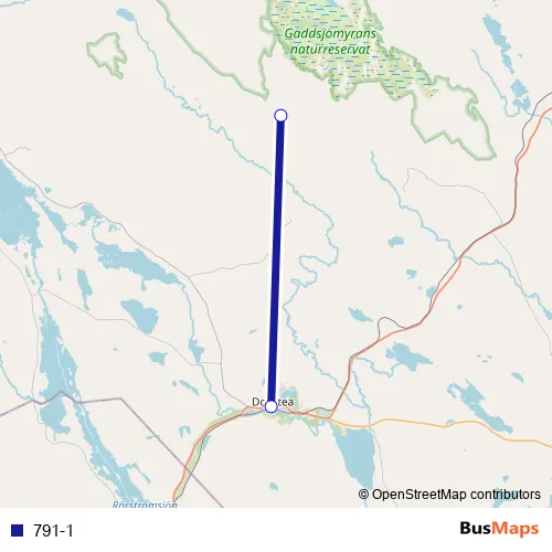 The first stop of the 791-1 bus route is Fjälltuna and the last stop is Dorotea busstation. 791-1 is operational during on weekdays.
