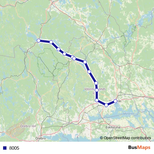 The first stop of the 8005 rail route is Ludvika station and the last stop is Västerås Centralstation. 8005 is operational during on weekdays.