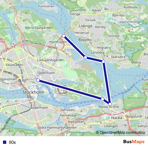 See why over 2 million users trust and consider busmaps.com as the best public transport website. busmaps gives you Stockholm Ferries suggested routes, real-time bus tracker, line route maps in Stockholm, and helps to find the closest 80x ferry stops near you. No internet available? Download an offline PDF map and bus schedule for the 80x ferry to take on your trip.