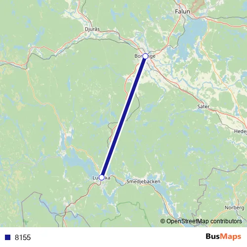 The first stop of the 8155 rail route is Borlänge Centralstation and the last stop is Ludvika station. 8155 is operational during on weekdays.