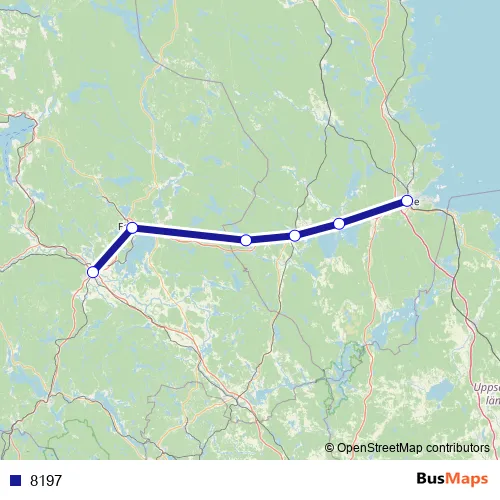 The first stop of the 8197 rail route is Gävle Centralstation and the last stop is Borlänge Centralstation. 8197 is operational during on weekdays.