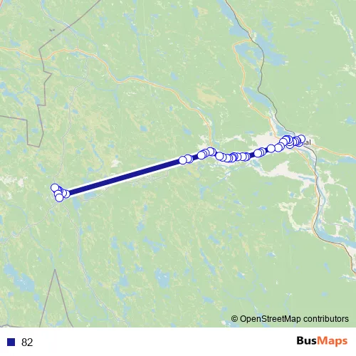 The first stop of the 82 bus route is Ljusdal station and the last stop is Los Kyrkbyn. 82 is operational during everyday.