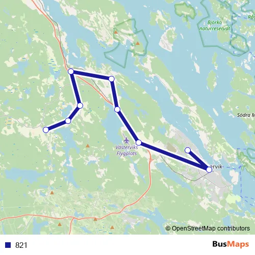 See why over 2 million users trust and consider busmaps.com as the best public transport website. busmaps gives you Vaestervik Buses suggested routes, real-time bus tracker, line route maps in Vaestervik, and helps to find the closest 821 bus stops near you. No internet available? Download an offline PDF map and bus schedule for the 821 bus to take on your trip.