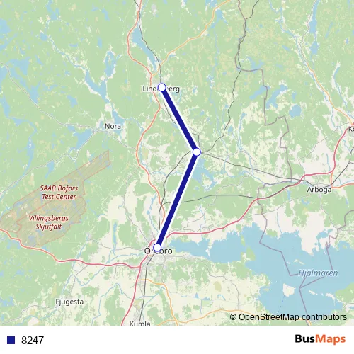 The first stop of the 8247 rail route is Lindesberg station and the last stop is Örebro Centralstation. 8247 is operational during on weekdays.