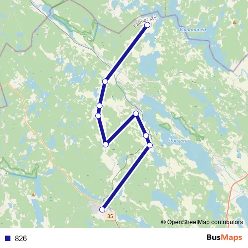The first stop of the 826 bus route is Överum skolan and the last stop is Degersnäs gård. 826 is operational during on weekdays.