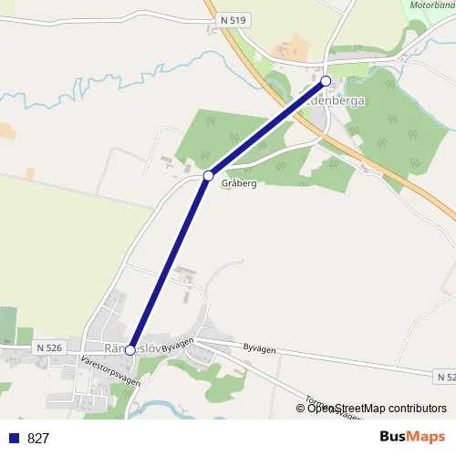 The first stop of the 827 bus route is Edenberga and the last stop is Ränneslöv. 827 is operational during on weekdays.