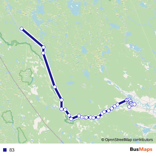 The first stop of the 83 bus route is Lobonäs and the last stop is Svenska Fönster. 83 is operational during on weekdays.