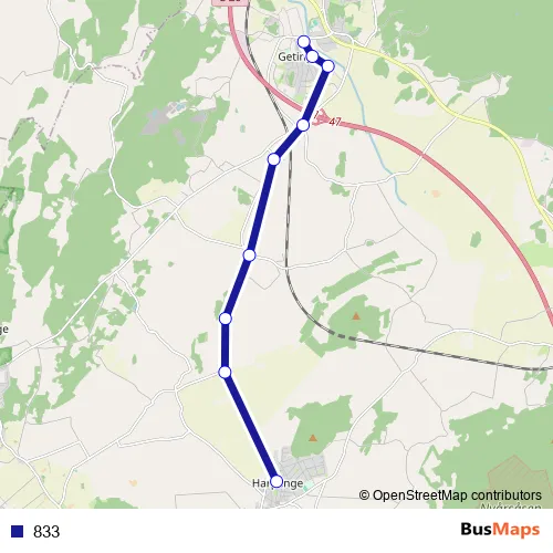 The first stop of the 833 bus route is Harplinge station and the last stop is Getinge centrum. 833 is operational during on weekdays.