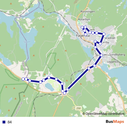 The first stop of the 84 bus route is Fagersta Vilhelminaparken and the last stop is Björsbo Södra. 84 is operational during on weekdays.