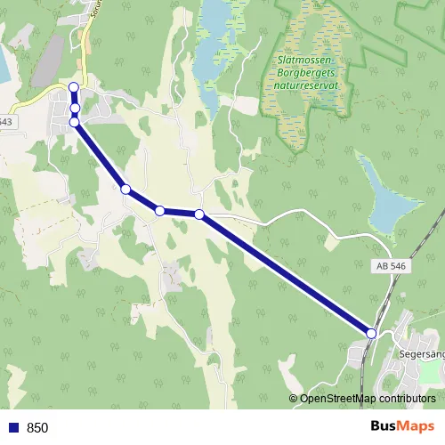 The first stop of the 850 bus route is Segersäng station and the last stop is Grödby Trollsta vsk. 850 is operational during on weekdays.
