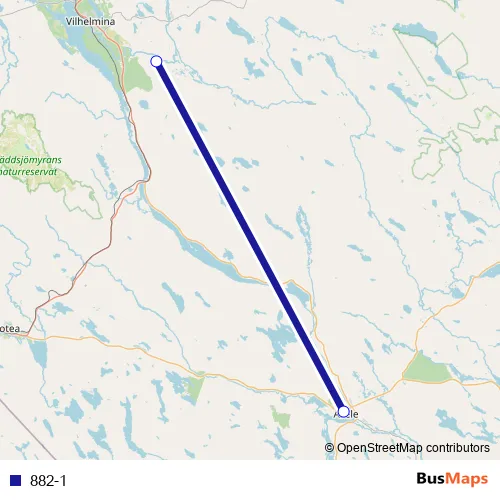 The first stop of the 882-1 bus route is Åsele busstation and the last stop is Vilhelmina flygplats. 882-1 is operational during everyday.
