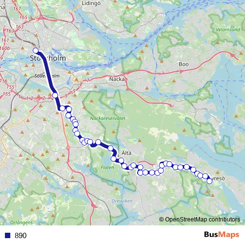 The first stop of the 890 bus route is Gullmarsplan and the last stop is Tyresö kyrka. 890 is operational during everyday.