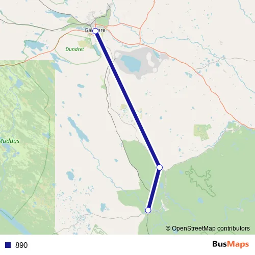 The first stop of the 890 bus route is Nattavaara station and the last stop is Gällivare centrum. 890 is operational during everyday.