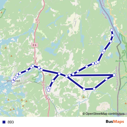 The first stop of the 893 bus route is Strömstad station and the last stop is Krokstrand. 893 is operational during on weekdays.