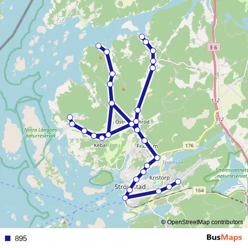 The first stop of the 895 bus route is Strömstad station and the last stop is Strömstad Prästängen Östra. 895 is operational during on weekdays.