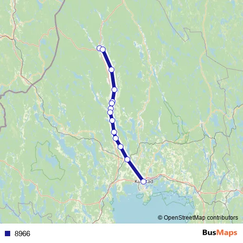 The first stop of the 8966 rail route is Torsby station and the last stop is Karlstad Centralstation. 8966 is operational during on weekdays.