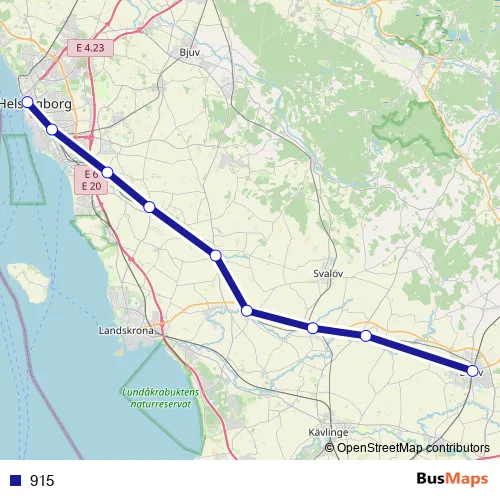 See why over 2 million users trust and consider busmaps.com as the best public transport website. busmaps gives you Helsingborg Buses suggested routes, real-time bus tracker, line route maps in Helsingborg, and helps to find the closest 915 bus stops near you. No internet available? Download an offline PDF map and bus schedule for the 915 bus to take on your trip.