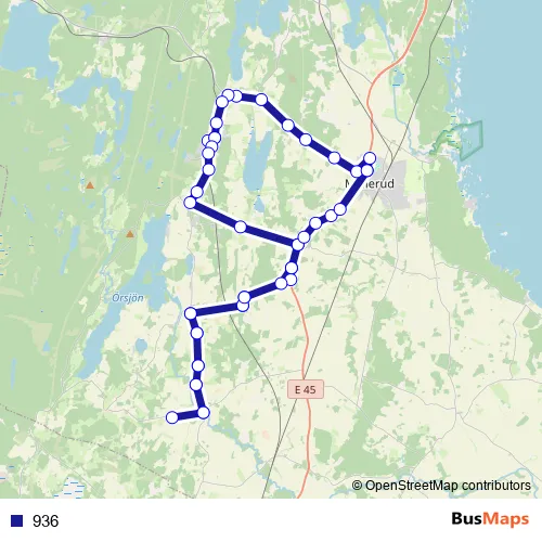 The first stop of the 936 bus route is Rådaskolan and the last stop is Örsberg. 936 is operational during on weekdays.