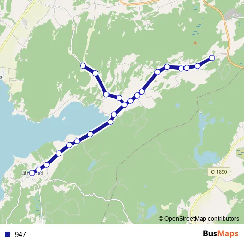The first stop of the 947 bus route is Långareds skola and the last stop is Sävekärr. 947 is operational during on weekdays.