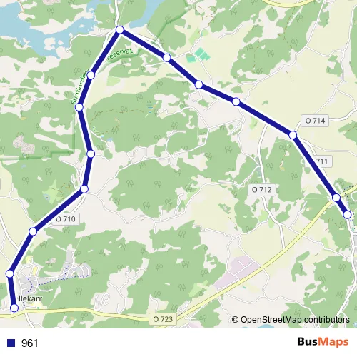 The first stop of the 961 bus route is Häggvallskolan and the last stop is Kållekärr. 961 is operational during on weekdays.