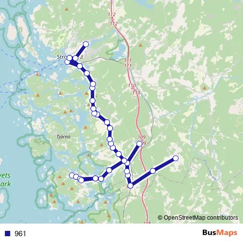 The first stop of the 961 bus route is Strömstad gymnasiet and the last stop is Strömstad station. 961 is operational during on weekdays.