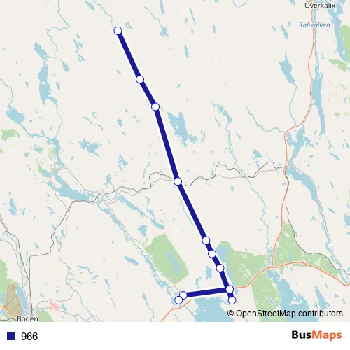The first stop of the 966 bus route is Tallberg and the last stop is Råneå busstation. 966 is operational during everyday.