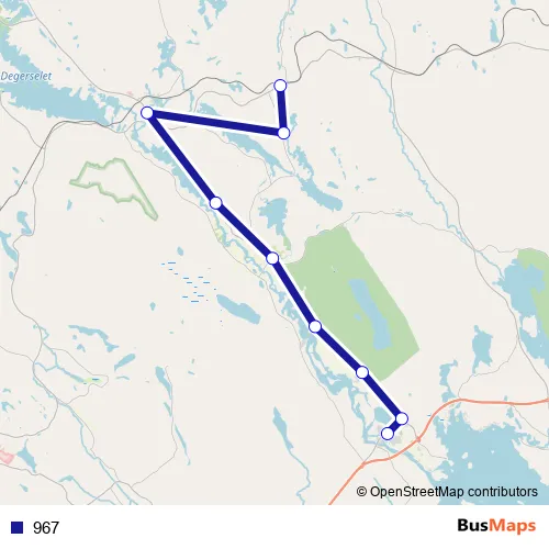 The first stop of the 967 bus route is Råneå busstation and the last stop is Bjurå. 967 is operational during on weekdays.