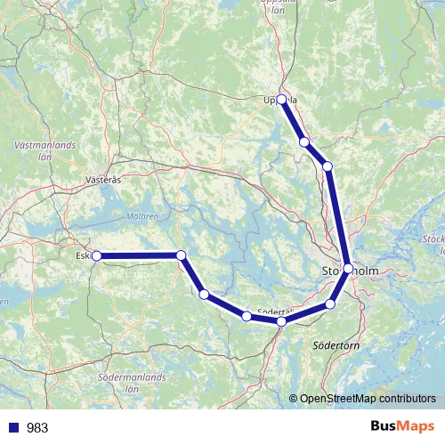 The first stop of the 983 rail route is Uppsala Centralstation and the last stop is Eskilstuna Centralstation. 983 is operational during everyday.