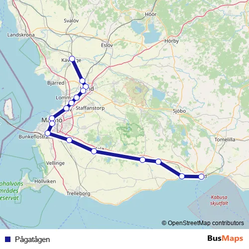 See why over 2 million users trust and consider busmaps.com as the best public transport website. busmaps gives you Malmoe Rail Services suggested routes, real-time bus tracker, line route maps in Malmoe, and helps to find the closest Pågatågen rail stops near you. No internet available? Download an offline PDF map and bus schedule for the Pågatågen rail to take on your trip.