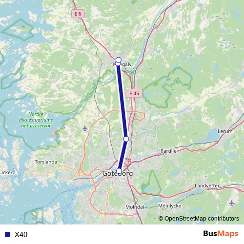 See why over 2 million users trust and consider busmaps.com as the best public transport website. busmaps gives you Kungaelv Buses suggested routes, real-time bus tracker, line route maps in Kungaelv, and helps to find the closest X40 bus stops near you. No internet available? Download an offline PDF map and bus schedule for the X40 bus to take on your trip.