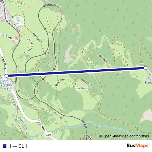 The first stop of the 1 cable-car route is Bergün/Bravuogn Sagliaz and the last stop is Pros da Darlux. 1 (SL 1) is operational during on weekends.