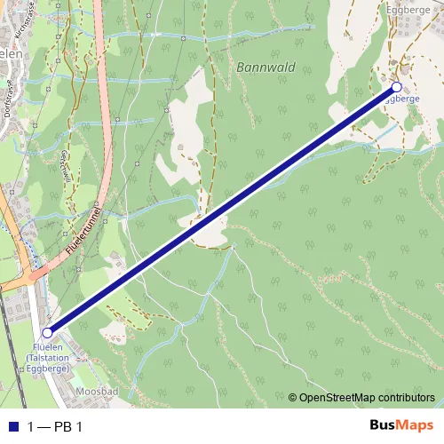 The first stop of the 1 cable-car route is Flüelen (Talstation Eggberge) and the last stop is Eggberge. 1 (PB 1) is operational during on weekdays.