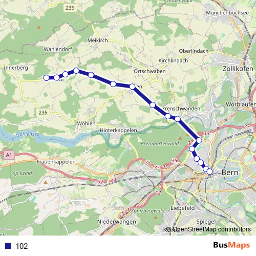 See why over 2 million users trust and consider busmaps.com as the best public transport website. busmaps gives you Bern Buses suggested routes, real-time bus tracker, line route maps in Bern, and helps to find the closest 102 bus stops near you. No internet available? Download an offline PDF map and bus schedule for the 102 bus to take on your trip.