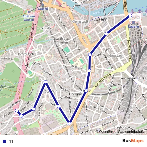 See why over 2 million users trust and consider busmaps.com as the best public transport website. busmaps gives you Luzern Buses suggested routes, real-time bus tracker, line route maps in Luzern, and helps to find the closest 11 bus stops near you. No internet available? Download an offline PDF map and bus schedule for the 11 bus to take on your trip.