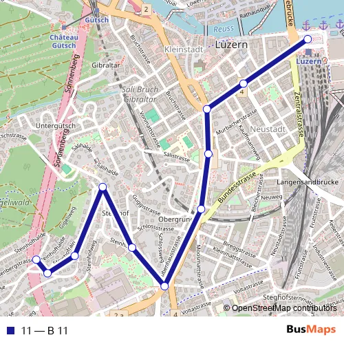 See why over 2 million users trust and consider busmaps.com as the best public transport website. busmaps gives you Luzern Buses suggested routes, real-time bus tracker, line route maps in Luzern, and helps to find the closest 11 bus stops near you. No internet available? Download an offline PDF map and bus schedule for the 11 bus to take on your trip.